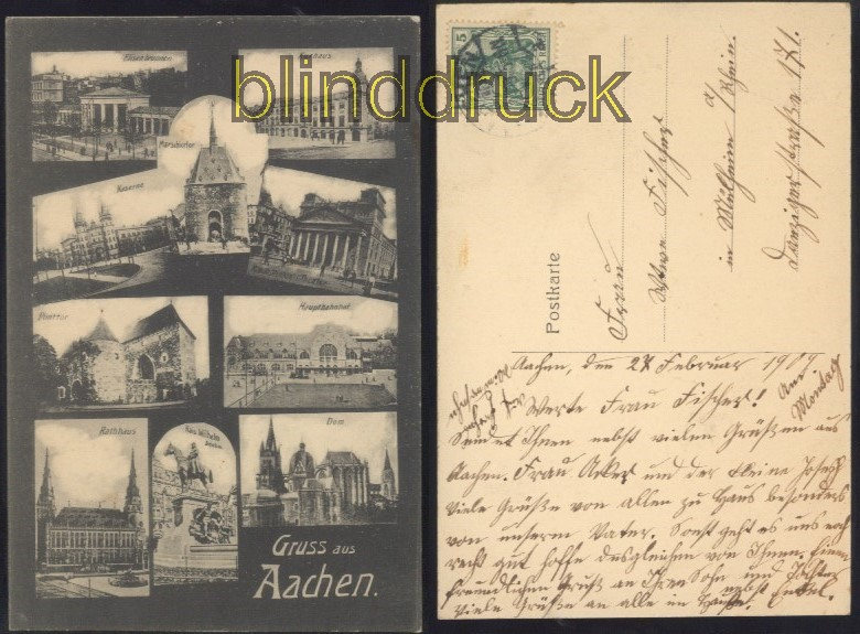 Nordrhein-Westfalen Gruss aus Aachen sw-AK 10 Ansichten 1909 Karte gelaufen aus Aachen 28.2.1909 nach Mülheim am Rhein Erhaltung siehe Scan