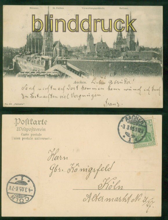 Nordrhein-Westfalen Aachen sw-AK Teilansicht mit Münster, St. Foilian, Rathaus und Verwaltungsgebäude 1905 nach Köln Karte gelaufen aus Aachen 3.3.1905 nach Köln Ankunftsstempel Erhaltung siehe Scan