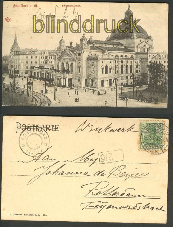 Hessen Frankfurt am Main sw-AK Schauspielhaus 1904 Karte gelaufen aus Frankfurt 5.9.1904 nach Rotterdam in Holland Erhaltung siehe Scan