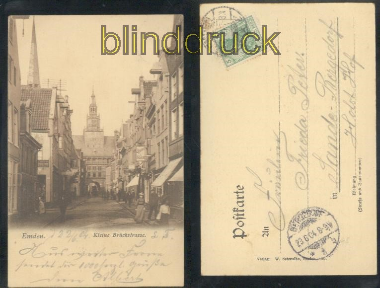 Niedersachsen Emden sw-AK Kleine Brückstrasse 1904 Karte gelaufen aus Emden 22.6.1904 nach Sande-Bergdeorf Erhaltung siehe Scan