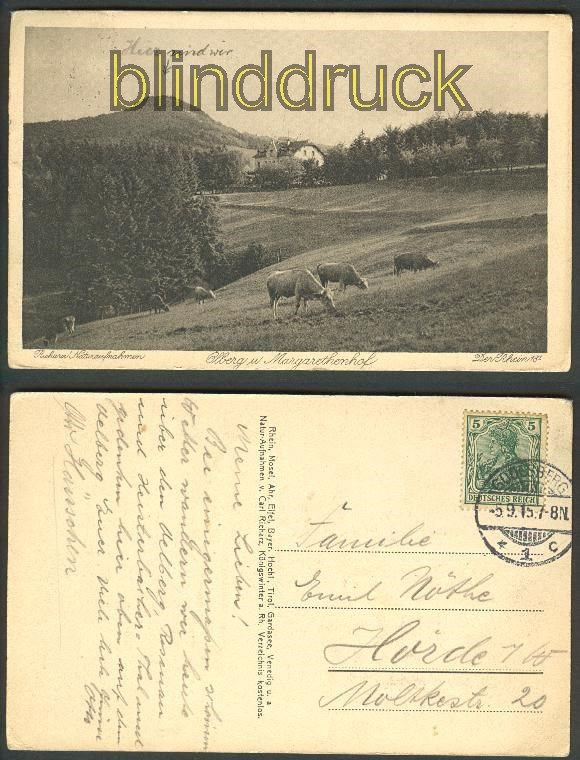 NRW Olberg und Margarethenhof sw-AK Richarzi Naturaufnahmen Der Rhein 18 I Karte gelaufen aus Godesberg 5.9.1915 nach Hörde Erhaltung siehe Scan  SEMI