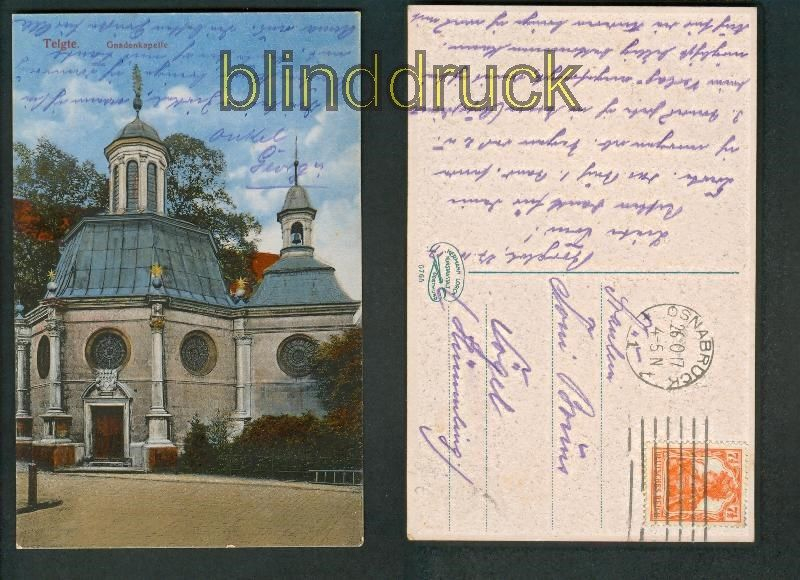 NRW Telgte farb-AK Gnadenkapelle 1917 Karte gelaufen aus Osnabrück 26.0.1917 (Monatsfehleinstellung) nach Sögel Erhaltung siehe Scan