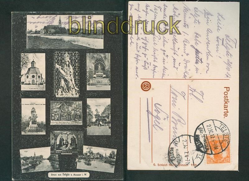 NRW Telgte sw-AK 10 Ansichten 1917 10 Anischten: Totalansicht, Gnadenkapelle, Gnadenbild, Gnadenaltar, Denkmal von Galen, Marienlinde und weitere Ansichten aus Telgte Karte gelaufen aus Telgte 22.10.1917 nach Sögel Erhaltung siehe Scan