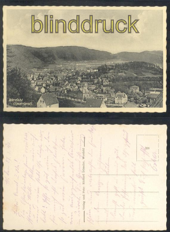 Nordrhein-Westfalen Werdohl (Sauerland) sw-AK Totalansicht 1940 Karte nicht gelaufen, aber Rückseite beschrieben und datiert: 27.3.1940 Erhaltung siehe Scan