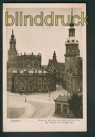 Sachsen Dresden sw-AK Blick auf die katholische Hofkirche und das königliche Schloss vom Zwinger aus ungebraucht Karte nicht gelaufen Erhaltung siehe Scan