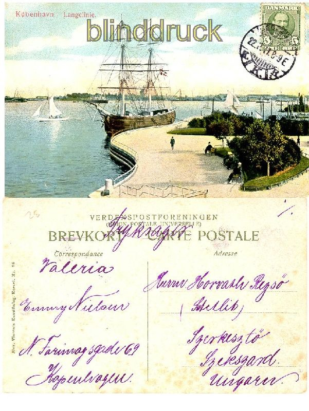 Dänemark Kopenhavn Kopenhagen farb-AK coloured postcard Langelinie mit Segelschiff Karte gelaufen 1911 nach Ungarn card used 1911 to Hungary Erhaltung siehe Scan condition look scan