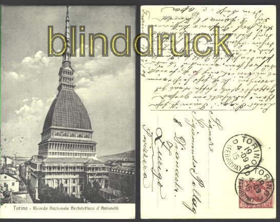 Italien sw AK Turin/Torino Ricardo Nazionale Architettura d`Antonelli Karte gelaufen Torino 19.4.1909 nach Zürich card used from Torino 19.4.1909 to Zürich Erhaltung siehe Scan Condition look scan