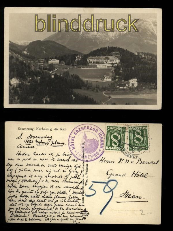 Österreich Semmering sw-Foto-AK Kurhaus gegen die Rax 1927 Karte gelaufen 11,7,1927 nach Wien Erhaltung siehe Scan