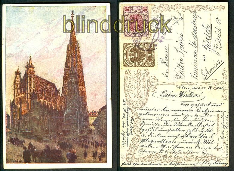 Österreich Wien fard-AK Stephansdom Wiener Künstler Postkarten Karte gelaufen Wien 12.9.1921 nach Zürich Erhaltung siehe Scan  SEMI
