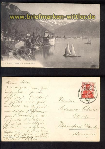 Chillon et la Dent du Midi sw-AK Karte gelaufen 1912 nach Remscheid-Hasten