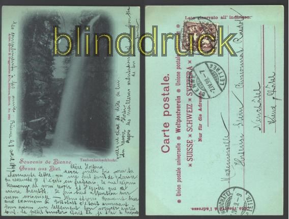 Schweiz sw-Litho-AK Gruss aus Biel Taubenlochschlucht Karte gelaufen aus Bienne 7.4.1899 nach Neuchatel Artelier H. Guggenheim &SEMI Co. Zürich gute Erhaltung siehe Scan