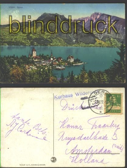Schweiz farb-AK Wilderswil Spiez Panorama Karte gelaufen 1927 nach Amsterdam Erhaltung siehe Scan