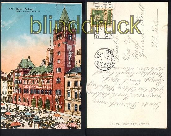 Schweiz farb-AK Basel Rathaus Karte gelaufen aus Basel 6.8.1927 nach Gilswil gute Erhaltung siehe Scan