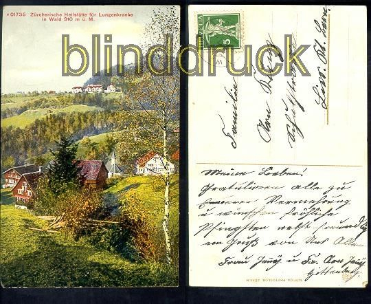 Schweiz farb-AK Züricherische Heilstätte für Lungenkranke in Wald Karte gelaufen Wald 5.5.1917 navh Lyss Erhaltung siehe Scan