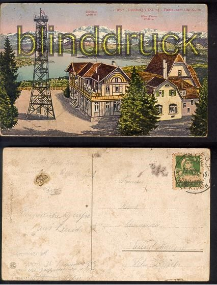 Schweiz farb-AK Uto Kulm Totalansicht Karte gelaufen aus Zürich 1921 Erhaltung siehe Scan
