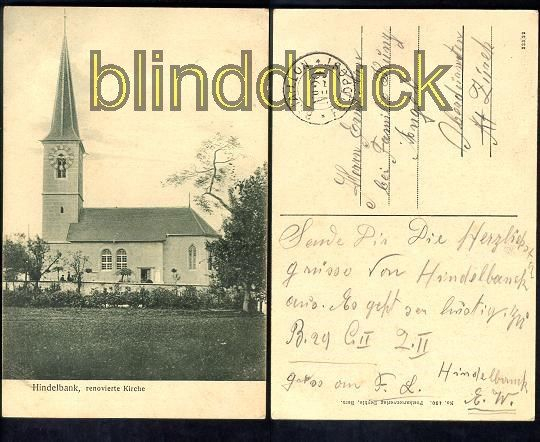 Schweiz sw-AK Hindelbank renovierte Kirche Totalansicht Karte gelaufen mit Feldpost Bataillon Nr. 29 nach Ober-Dürnten Erhaltung siehe Scan