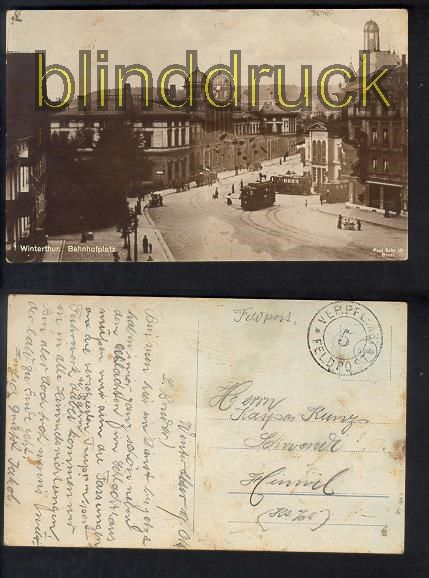 Schweiz sw-AK Winterthur Bahnhofsplatz Karte gelaufen mit Feldpost Verpfl-Abt. Nr 5 nach Hinwil Erhaltung siehe Scan