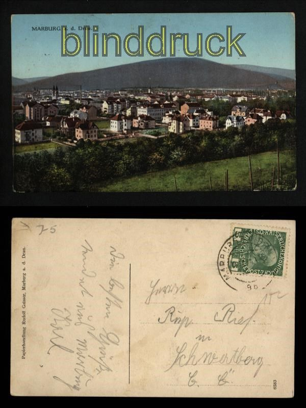 Slowenien Marburg an der Drau farb-AK Maribor Totalansicht 1914 Karte gelaufen 1914 nach Schwertberg Erhaltung siehe Scan
