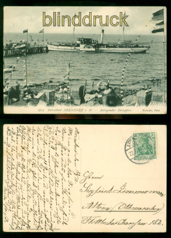 Arendsee Ostseebad sw-AK Anlegender Dampfer 1912 nach Altona (d10026)