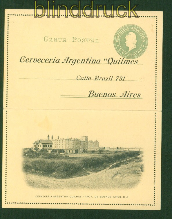 Argentinien Kartenbrief ungebraucht mit privaten Zudruck ??? 4 Centavos mit Zudruck rückseitig Anicht Cerneceria Erhaltung siehe Scan