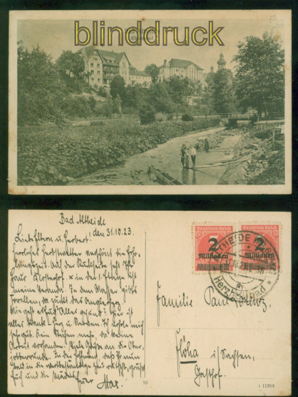 Mecklenburg-Vorpommern Bad Altheide sw-AK Klosterhof SSt. 1923 nach Flöha Karte gelaufen mit Sonderstempel SSt. aus Bad Altheide 31.10.1923 nach Flöha Erhaltung siehe Scan