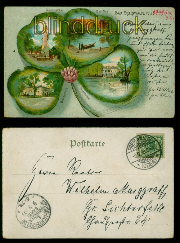 Bad Freienwalde farb-AK vier Ansichten 9.9.1899 nach Groß-Lichterfelde (d9915)