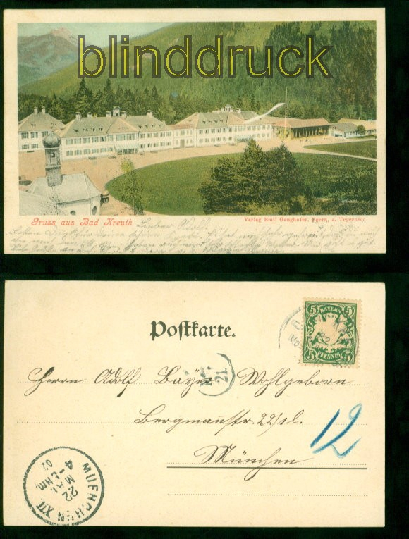 Bayern Gruss aus Bad Kreuth farb-AK Teilansicht 1902 nach München Karte gelaufen aus Bad Kreuth 22.3.1902 nach München Ankunftstempel Erhaltung siehe Scan