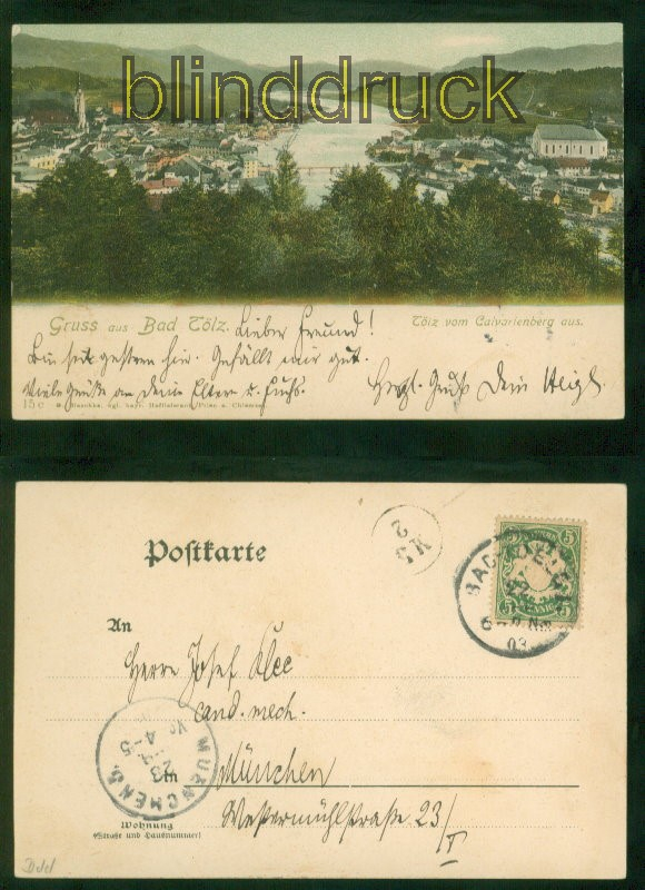 Bayern Bad Tölz sw-AK links der Isar 1903 nach Stein bei Traunstein Karte gelaufen aus Bad Tölz 12.10.1903 nach Stein bei Traunstein Erhaltung siehe Scan