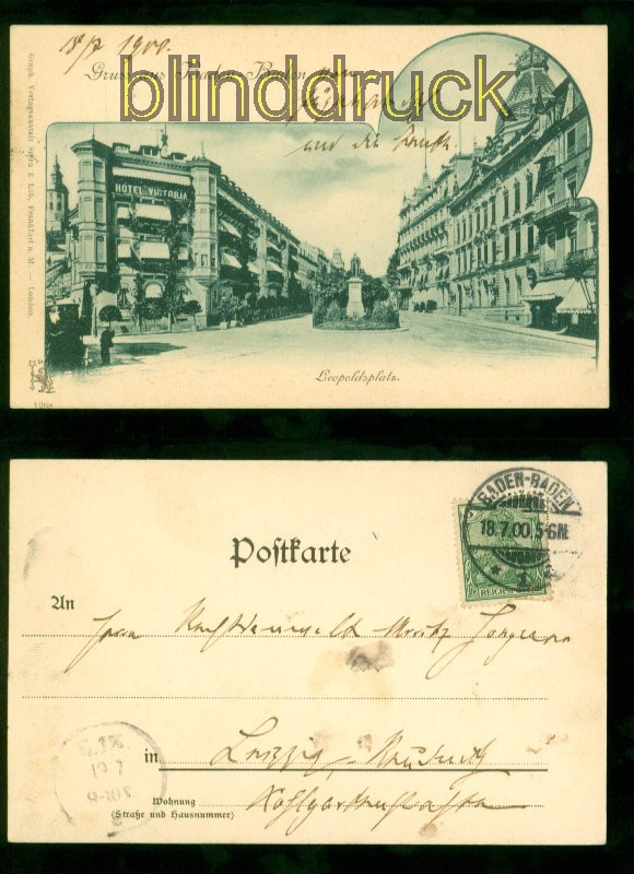 Baden-Württemberg Gruss aus Baden-Baden sw-AK Leopoldsplatz 1900 nach Leipzig Karte gelaufen aus Baden-Baden 18.7.1900 nach Leipzig Erhaltung siehe Scan