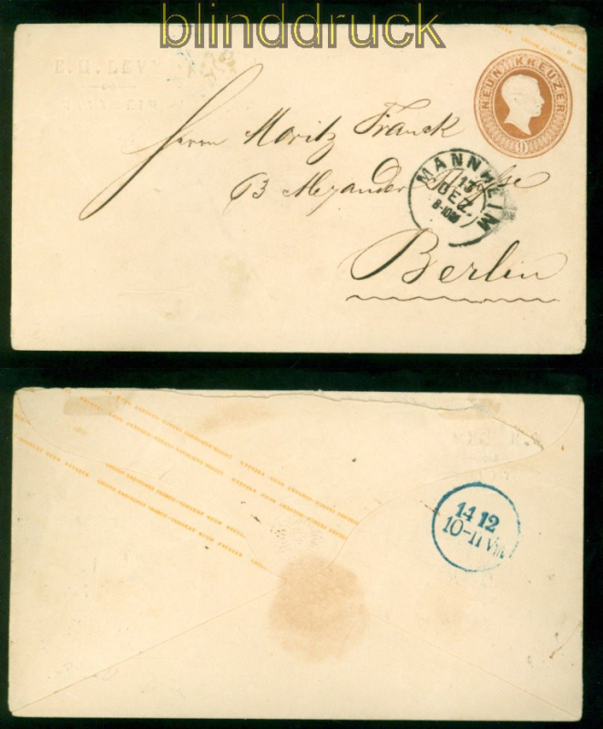 Altdeutschland Baden GSU U 8 I gestempelt Mannheim 13. Dez. nach Berlin Ganzsachenumschlag Ganzsachenumschalag GSU 9 Kreuzer braunauf lilarosa kurze Gummierung gelaufen aus Mannheim 13. Dez. nach Berlin Erhaltung siehe Scan