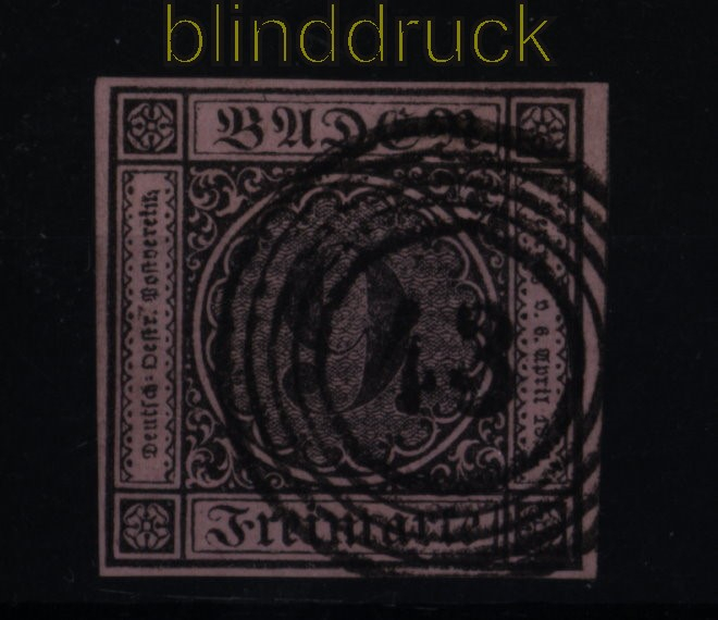 Altdeutschland Baden Mi # 4 gestempelt 9 Kreuzer Nummernstempel 43 9 Kreuzer schwarz auf lilarosa entwertet mit Nummernstempel 43 Freiburg nicht angeschnitten Erhaltung siehe Scan