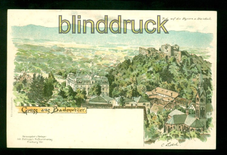 Baden-Württemberg Badenweiler Litho AK Gruss aus .... Blick auf die Vogesen und Rheinthal ungebraucht Karte nicht gelaufen Erhaltung siehe Scan