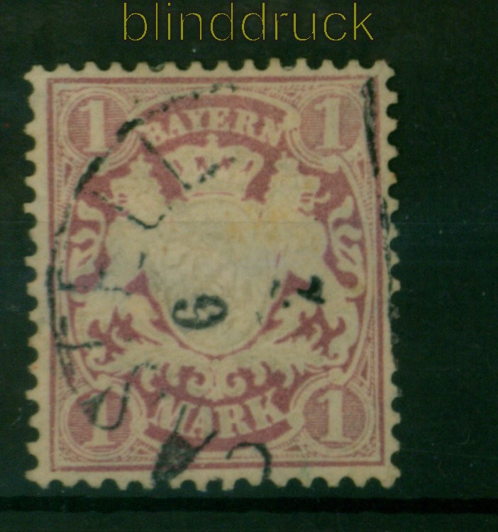 Bayern Mi # 43 gestempelt 1 Mark violett gezähnt Wasserzeichen 2 1 Mark violett gezähnt Wasserzeichen 2 gestempelt Erhaltung siehe Scan