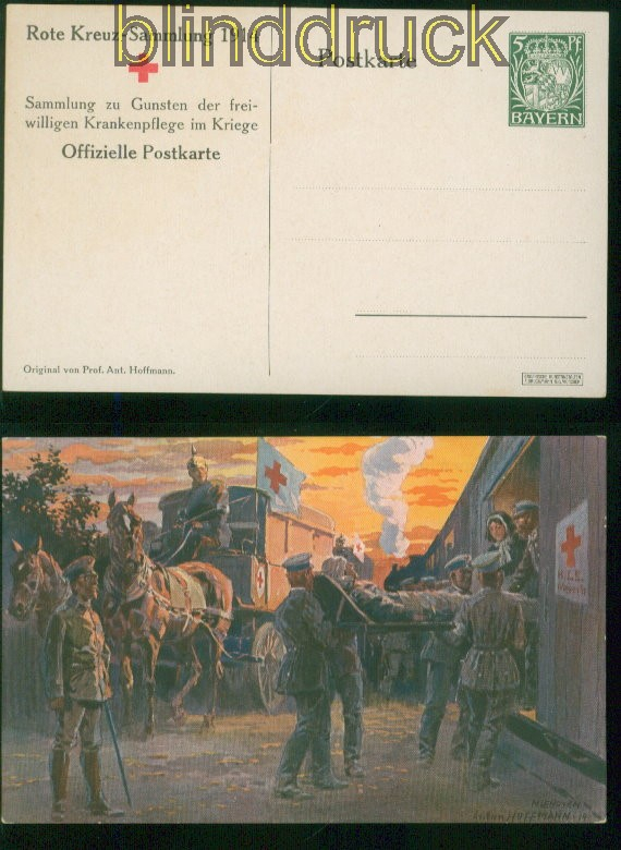 Bayern Privat-GSK PP 38 C 7 / 02 Rote Kreuz Sammlung 1914 ungebraucht Privatganzsachenkarte der Roten Kreuz-Sammlung 1914 Sammlung zu Gunsten der freiwilligen Krankenpflege im Kriege Verwundetenverladung in einen Eisenbahnwaggon ungebraucht Erhaltung siehe Scan