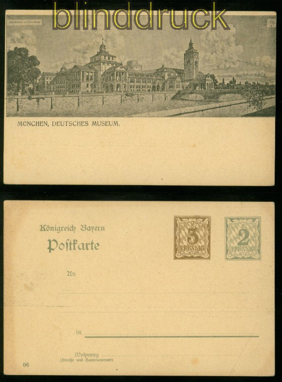 Bayern Privat-GSK PP 8 F 1 / 01 Deutsches Museum München ungebraucht 3 Pfg. Ziffern braun neben 2 Pfg. Ziffern grau Deutsches Museum München Perspective Karte ungebraucht Erhaltung siehe Scan