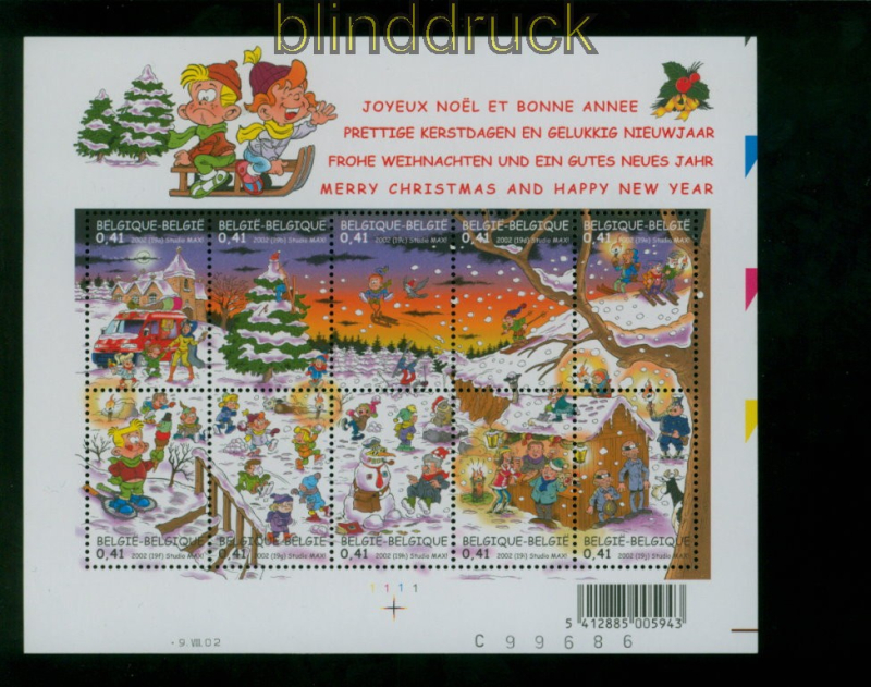 Belgien Mi # 3151/60 postfrisch Weihnachen und Neujahr Kleinbogen 2002 kompletter Kleinbogen postfrisch einwandfreie Erhaltung siehe Scan
