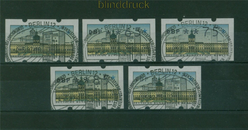 Berlin ATM 1987 Mi # 1 Versandstellensatz 2 Ersttags-Sonderstempel kompletter Versandstellensatz 2 Ersttags-Sonderstempel Erhaltung siehe Scan