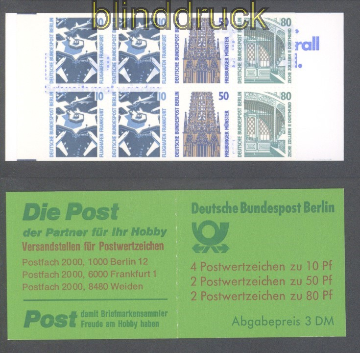 Berlin Markenheftchen Mi # 14 oZ gestempelt Sehenswürdigkeiten Sehenswürdigkeiten Markenheftchen postfrisch Erhaltung siehe Scan