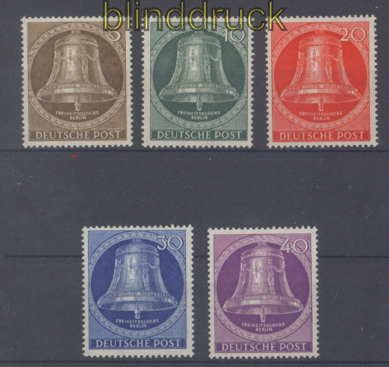 Berlin Mi # 101/05 postfrisch Glocke Klöppel Mitte Einweihung der Freiheitsglocke im Turm des des Schöneberger Rathauses (III) Klöppel Mitte komplette Ausgabe postfrisch Erhaltung siehe Scan