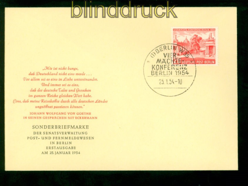 Berlin Mi # 116 Viermächte Konferenz Ersttagsbrief FDC 20 Pfg. Viermächte Konferenz auf Ersttagsbrief FDC Erhaltung siehe Scan