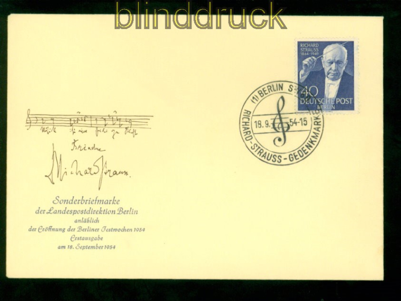 Berlin Mi # 124 Ersttagsbrief FDC 5. Todestag Richard Strauss (57492)