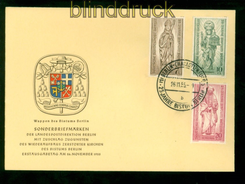 Berlin Mi # 132/34 Ersttagsbrief FDC 25 Jahre Bistum Berlin 25 Jahre Bistum Berlin: Wiederaufbau zerstörter Kirchen auf Schmuck-Ersttagsbrief FDC Erhaltung siehe Scan
