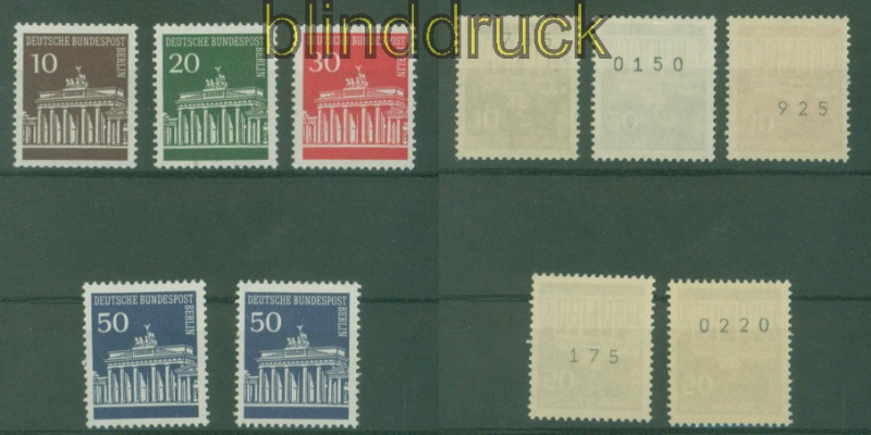 Berlin Mi # 286/90 R postfrisch Brandenburger Tor mit rückseitiger Nummer(51021)