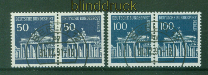 Berlin Mi # 289 und 290 gestempelt waagerechte Paare Brandenburger Tor 50 und 100 Pfennig Brandenburger Tor waagerechte Paare gestempelt Berlin 12 Erhaltung siehe Scan