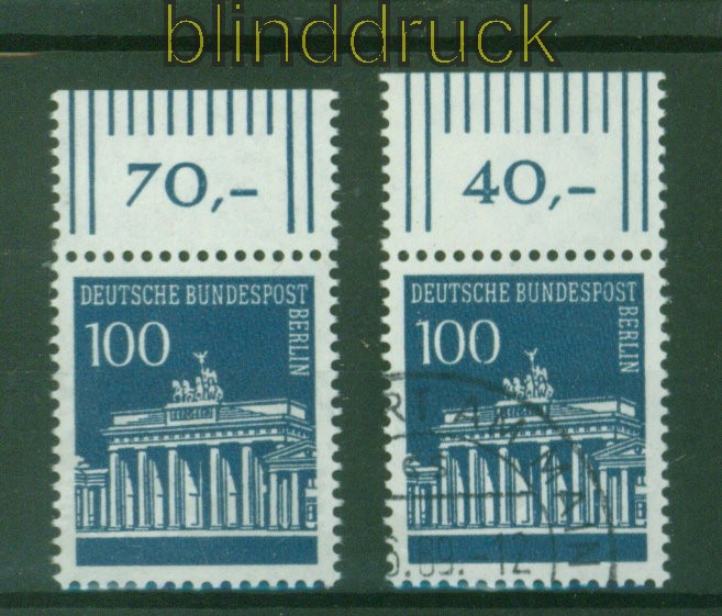 Berlin Mi # 290 OR W postfrisch und gestempelt Brandenburger Tor 100 Pfg. Brandenburger Tor vom Oberrand im Walzendruck postfrisch und gestempelt Erhaltung siehe Scan