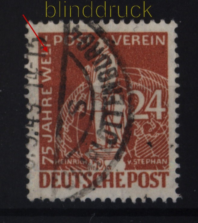 Berlin Mi # 37 I gestempelt 24 Pfg. Stephan mit Plattenfehler 24 Pfg. 70 Jahre Weltpostverein UPU gestempeltes Bedarfsstück mit Plattenfehler I: senkrechter Balken des L in Welt unten gebrochen Erhaltung siehe Scan