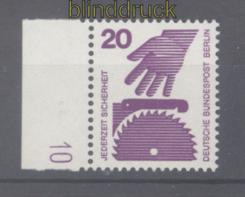 Berlin Mi # 404 A DZ postfrisch mit Druckerzeichen "10" 20 Pfg. Unfallverhütung mit Druckerzeichen DZ "10" postfrisch Erhaltung siehe Scan
