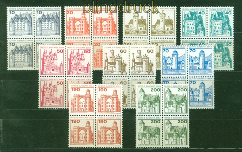 Berlin Mi # 532/40 postfrisch Burgen & Schlösser 4er-Blöcke Dauerserie Burgen und Schlösser komplette Ausgabe 4er-Blöcke postfrisch nicht gefaltet Erhaltung siehe Scan