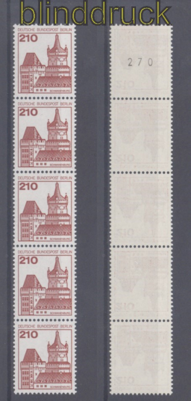Berlin Mi # 589 R postfrischer 5er-Streifen Burgen & Schlösser 210 Pfg. Freimarken Burgen und Schlösser (II) 5er-Streifen mit Nummer 270 postfrisch Erhaltung siehe Scan