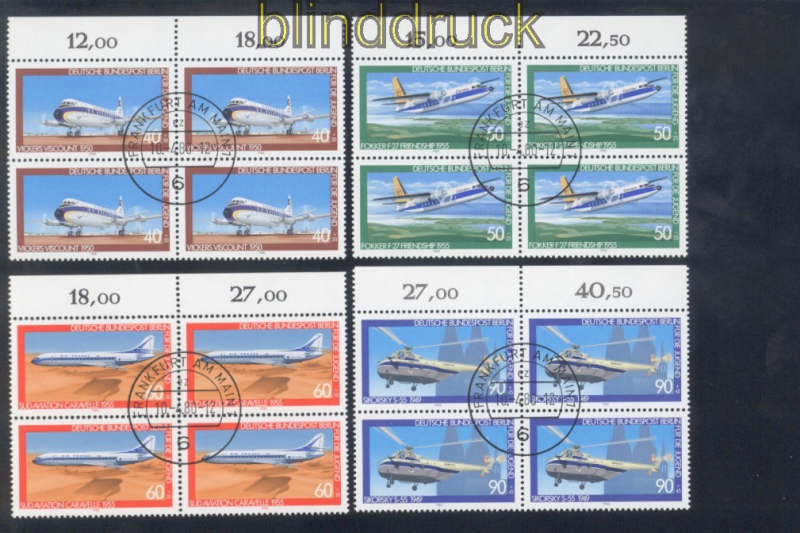 Berlin Mi # 617/20 gestempelte 4er-Blöcke vom Oberrand Jugend 1980 Flugzeuge Für die Jugend 1980: Luftfahrt Flugzeuge komplette Ausgabe 4er-Blöcke vom Oberrand gestempelt Erhaltung siehe Scan